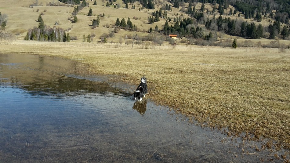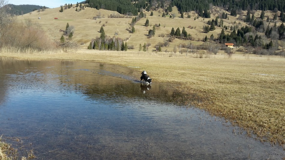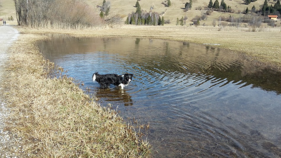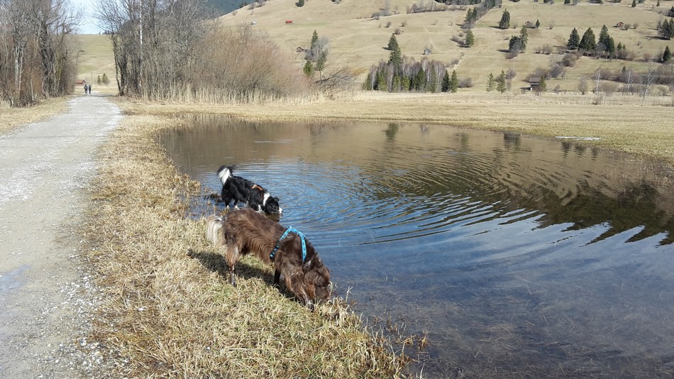 Dienstag sind wir an der Ammer entlang bis zur Ettaler Mühle gewandert. Als Fotomodell ist unser Higgins nicht zu übertreffen! Die anderen haben keine Lust zu posieren.